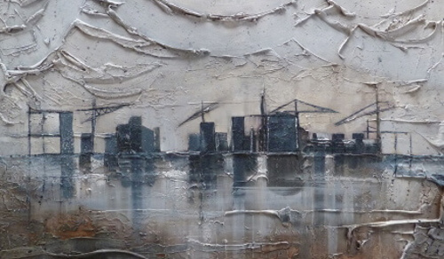 beweging én een ingetogen stijl waarbij zij werkt met een verouderde, aangetaste structuur.