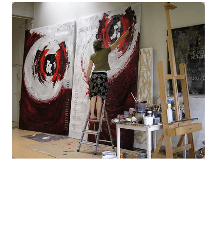 Haar schilderijen kenmerken zich door twee verschillende stijlen: een kleurrijke stijl, met structuur en